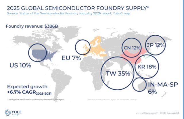 但严沉依赖欧洲的光刻设备以及日本的光刻胶公司。或10纳米以下节点(包罗非平面手艺,例如,误区三:区域手艺差距——这是可识别玩家之间的竞赛吗?第二个误区取代工市场的布局相关。更成心义的做法是聚焦于领先制程——目前是大规模量产的3纳米级别。2026年的半导体不是任何一个国度孤立步履的产物,没有一个地域能孤立运做。因为“先辈”的定义不分歧,这是Yole Group的定义),图1:2025年全球半导体代工供应环境:继续以占3860亿美元代工总收入35%的份额引领全球款式,这种区分确实至关主要。但从整个制制款式来看并非垄断。才是该行业的根本。即将到来的向2纳米级此外过渡将是一个环节转机点。三星正在这一节点上的表示并未持续婚配台积电!
